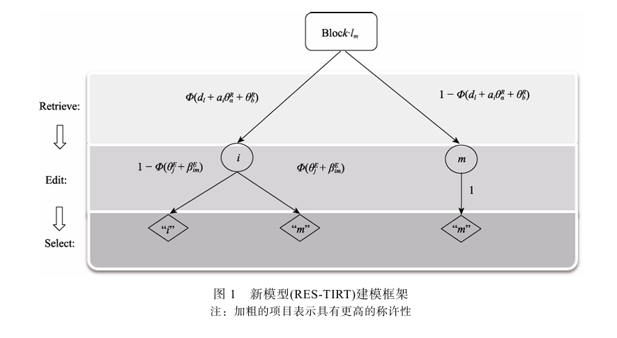 本研究创新性地融合了瑟斯顿IRT模型(Thurstonian IRT, TIRT;Brown等人,2011)与虚假作答的“检索-编辑-选择”理论模型(Retrieve-Edit-Select, RES;Böckenholt,2014),开发出针对迫选测验中虚假作答行为的新模型——RES-TIRT模型。它就像给迫选测验装上了一个“测谎仪”。