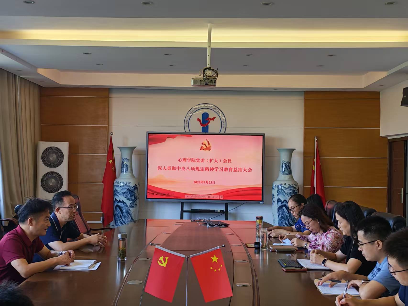 9月23日,心理学院党委召开深入学习贯彻中央八项规定精神学习教育总结会,深入学习习近平总书记关于作风建设的重要指示精神,传达学习中央党的建设工作领导小组会议精神,全面总结学院学习教育开展情况,研究部署推进作风建设常态化长效化工作。院党委书记曹腾觉主持会议。
