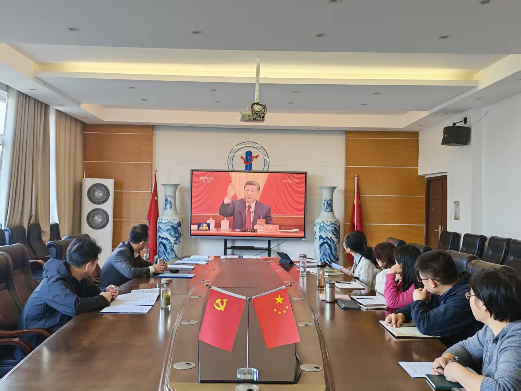 与会成员集体观看了新闻联播《中国共产党第二十届中央委员会第四次全体会议公报》。