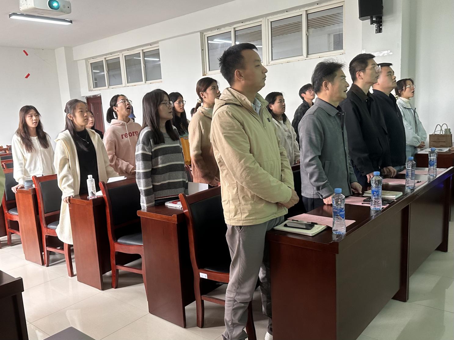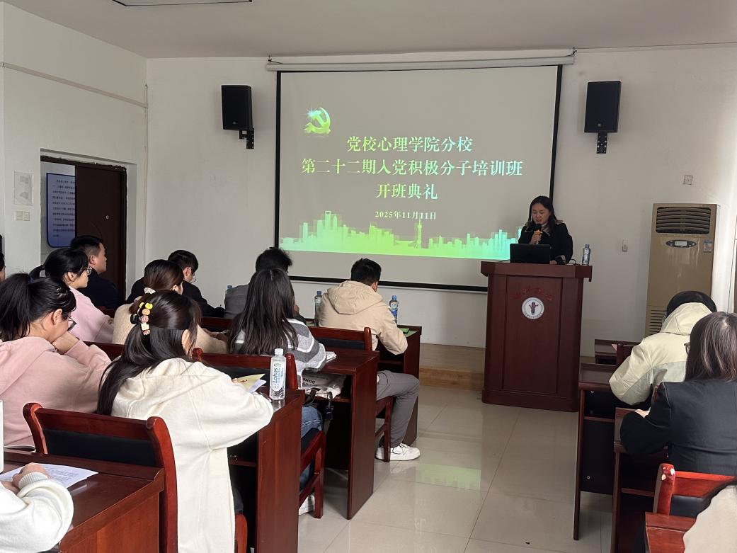 为深入学习贯彻党的二十届四中全会精神,引导入党积极分子进一步坚定理想信念、端正入党动机,11月11日下午,学院隆重举行第22期入党积极分子培训班开班典礼。院党委书记曹腾觉、副书记周婧菲、本科生党支部书记徐呈康、研究生党支部书记徐栋、培训班班主任万小冬与23名入党积极分子学员参会。院党委副书记周婧菲主持开班仪式。