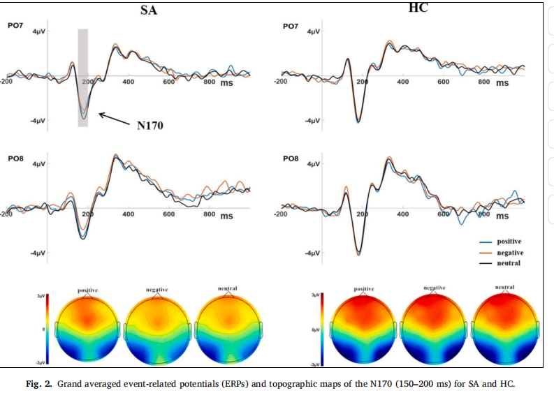 研究共招募59名参与者,包括28名社交焦虑个体和31名健康对照。参与者完成基于“回溯线索(retro-cue)”的社交场景表象生成任务,并在此过程中记录其事件相关电位(Event-Related Potentials, ERPs)。实验材料取自亚洲青年社交包容/排斥图像数据库(ISIEA),涵盖积极、消极与中性三类社交场景。研究重点分析了ERP两个关键成分:N170与LPP。