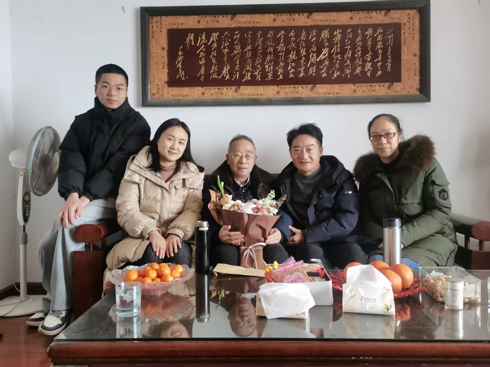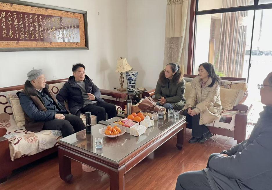 在戴教授家中,学院领导与他促膝长谈、闲话家常,悉心询问其近期生活起居与身体状况,细致叮嘱教授冬日注意保暖、保重身体。交谈中,学院领导还向戴教授简要介绍了学院过去一年在学科建设、教学科研等方面的发展变化与工作动态。
